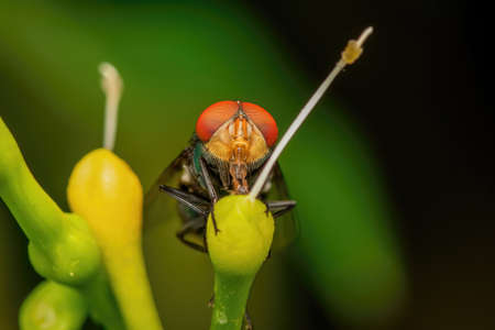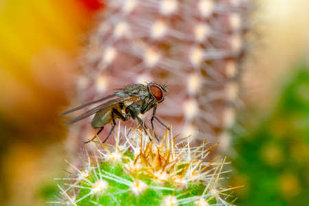 Housefly close up Macro shot. The housefly is a fly of the suborder Cyclorrhapha, and has spread all over the world as a commensal of humans. It is the most common fly species found in houses