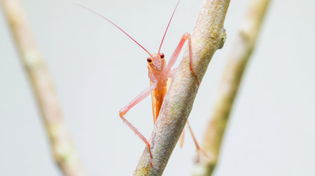 Leptynia hispanica Spanish Stick Insect animal of about 8 cm that is not uncommon to find feeding on different plants in spring natural light