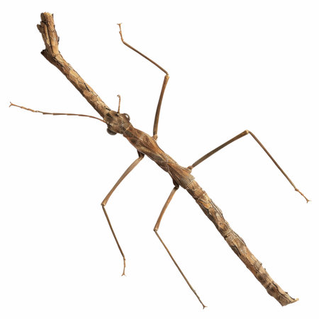 Top view of Spiny Leaf Insect aka Extatosoma tiaratum. Isolated on white background.