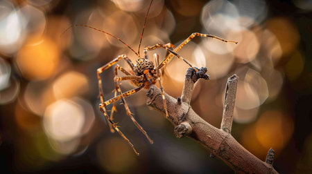 Image of brown spider on tree branch. Insect Animal. Insect Animal
