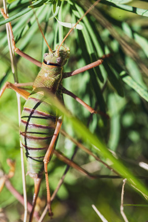 A closeup shot of an Eastern Lubber grasshopper on a tree
