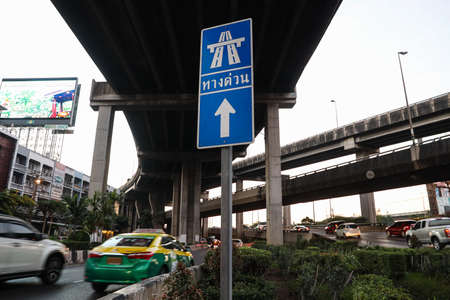 Traffic jam at Vibhavadi Rangsit Road. Bangkok traffic is usually busy during the rush hour Moments after work.