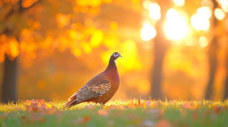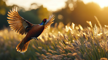 Vibrant pheasant in majestic sunrise field. That the image is generated using AI.