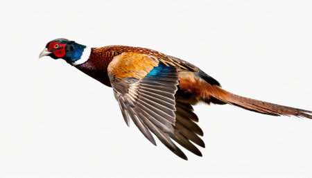 Pheasant in flight isolated on white background with clipping path.