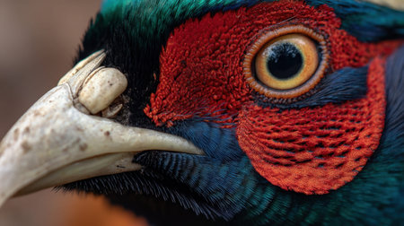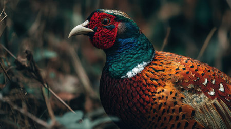 experience the stunning beauty of a pheasant in this photo-realistic image. admire the intricate feather patterns, vibrant colors, and majestic pose of this regal bird. a must-see for bird lovers and nature enthusiasts alike.keywords: photo-realistic, pheasant, bird, feather patterns, vibrant colors, nature, bird lovers, majestic pose, regal bird, intricate. ai generated