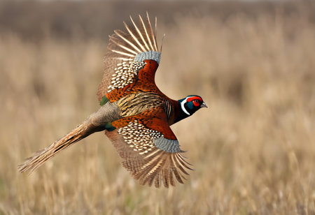 Ringneck Pheasant (Phasianus colchicus) in flight