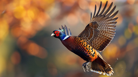 Pheasant (Phasianus colchicus) in flight