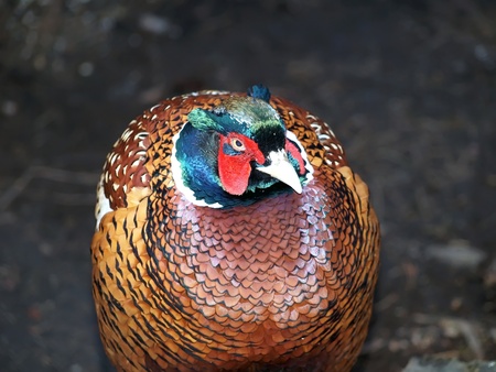 Close up portrait of a common pheasant (phasianus colchicus) looking up
