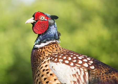 Portrait of common pheasant male, Phasianus colchicus game bird