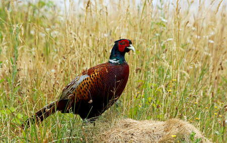 Pheasant small game bird on meadow