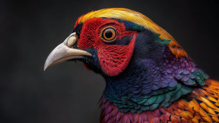 A stunning close-up of a colorful pheasant captured in its natural habitat. This bird exhibits remarkable plumage and intricate patterns, showcasing the beauty of wildlife.