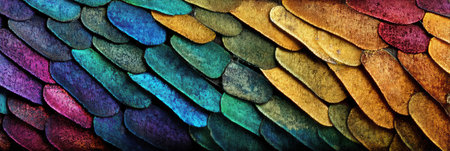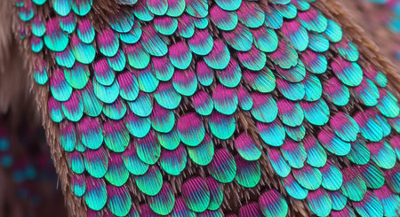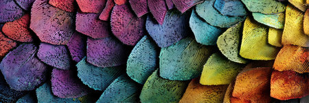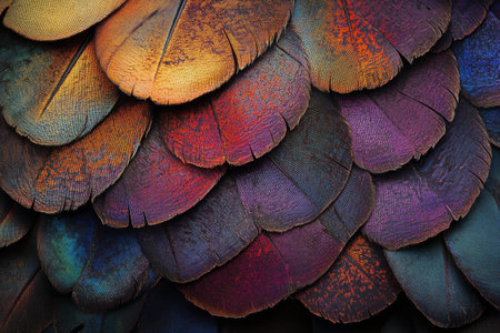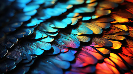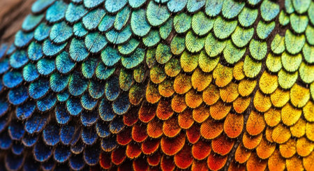 Capture the essence of nature's beauty with this vivid close-up of multicolor feather patterns showcasing intricate textures and bright hues.