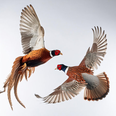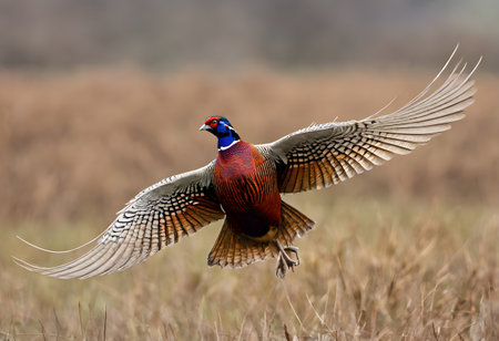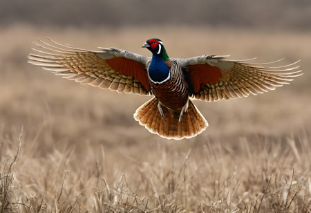 Ringneck Pheasant (Phasianus colchicus) in flight