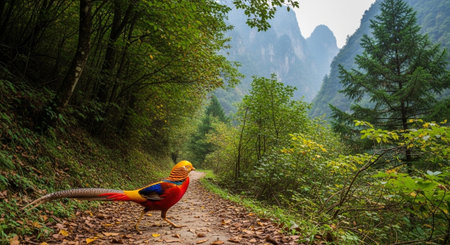 Vibrant Tranquility: Golden Pheasant with Nature's Bokeh