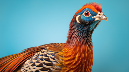 A Profile Portrait of a Temminck's Tragopan Against a Blue Background