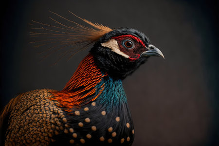 Portrait of a male pheasant on a dark background.