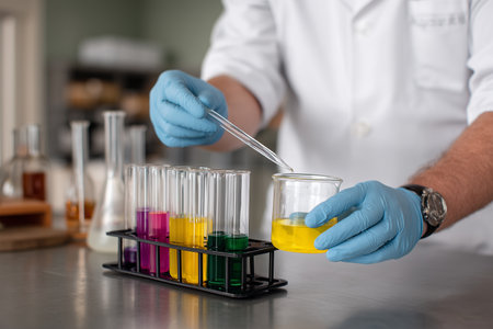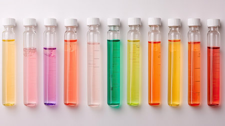 AI Generated. Test tubes filled with colorful liquids arranged neatly on clean