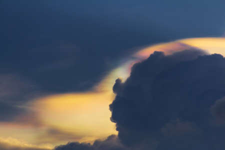 Beautiful iridescent cloud, Irisation. Skyscraper background.