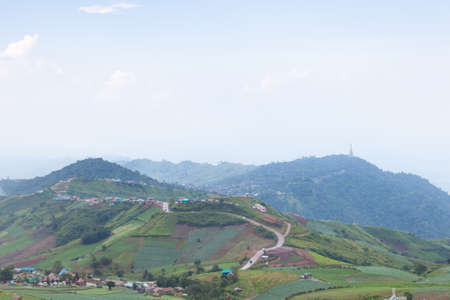 Beautiful landscape of Phu tub berk. agriculture village on the mountain with layer mountain and cloudy with sunset background.