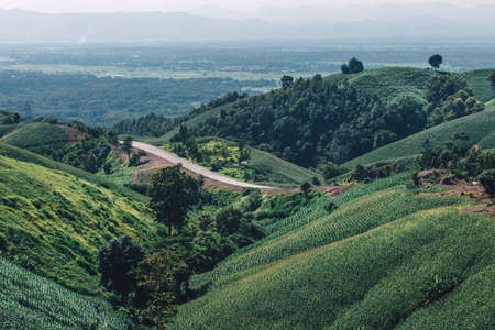 Mountain view with winding road. The location in Khao Kho District, Phetchabun, Thailand, Southeast Asia.