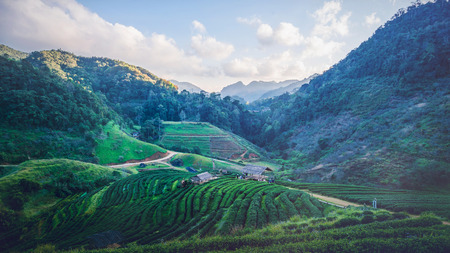 Background natural landscape view on the mountains. tea plantation on the mountain. Thailand doi-angkhang