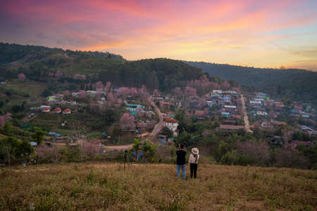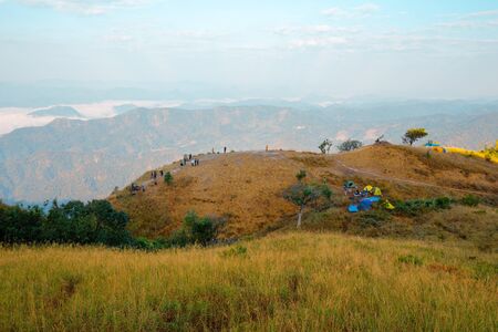 Tak Province - Thailand 20 Jan 2019: (Doi Thule) In the morning, hikers come to camp. Is watching the natural scenery