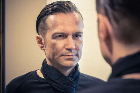Facial care and ageing. Attractive mature man. Mature guy with grey hair and bristle outdoors. Men get more attractive with age. Hairdresser salon. Stylish hairstyle. Male face. Businessman concept