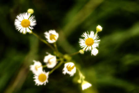 Flowers of white Erigeron (family Asteraceae), blooming in the summer