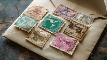 A vintage-style envelope with stamps from around the world, evoking the spirit of travel and adventure.