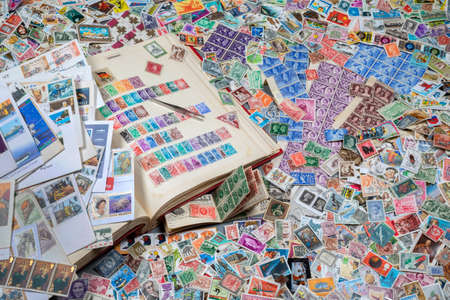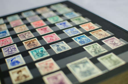 Close up of ancient old postal stamps