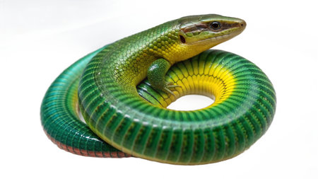 Green and yellow skink isolated on white background. Close-up.