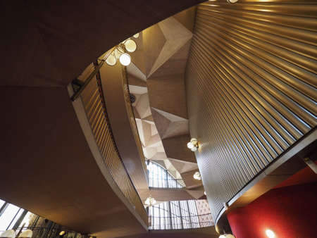 TURIN, ITALY - CIRCA JUNE 2019: Foyer of Teatro Regio (meaning Royal Theatre) designed by architect Carlo Mollino in the sixties