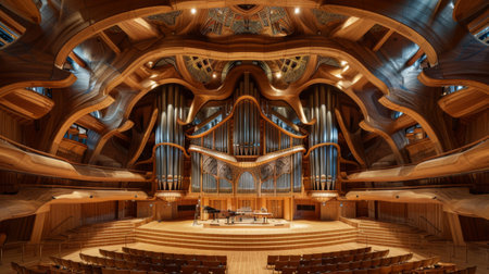 Majestic Modern Concert Hall Interior with Grand Organ and Spectacular Architecture.