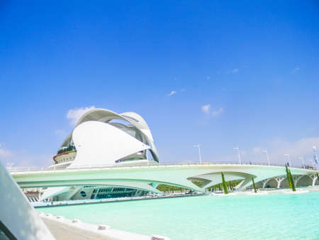 VALENCIA, SPAIN, 19 MARCH 2019: Futuristic architecture and clean pool of the modern city of arts and science