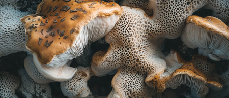 Exploring porous mushroom stems with spongy textures and varied colors in nature
