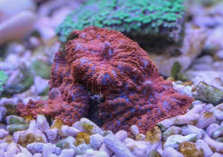 A close-up of a coral in an aquarium, saltwater aquarium.