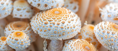 A captivating close-up view of organic mushrooms showcasing their distinct spotted caps, perfect for illustrating themes of nature, food, and health.