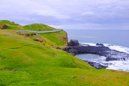 Rugged coastline with breaking waves of Nobbies, Phillip Island, Victoria, Australia