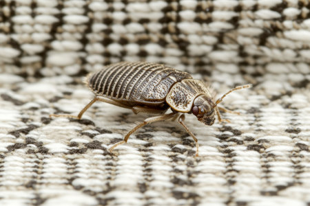 Close Up of Bedbug on Textured Fabric Macro of Household Pest.