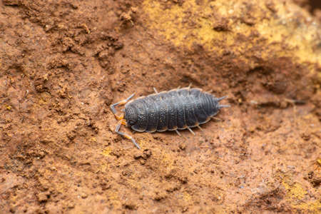 Woodlouse crawls forward, Oniscidea, Isopoda