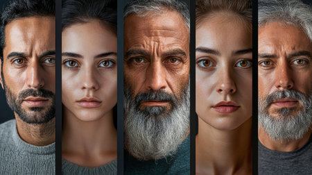 A striking display of human connection emerges through a collage of faces, showing rich textures and expressive features that bridge generations and cultures.
