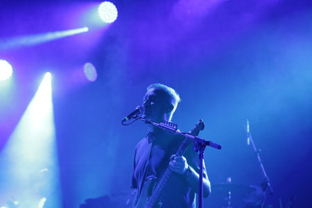 Padova, PD, Italy - October 20, 2017: Live Concert indoor of Luciano Ligabue an Italian pop and rock singer and composer with his band