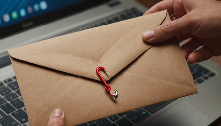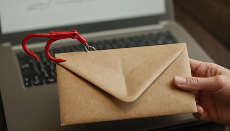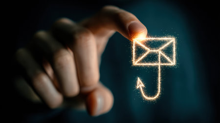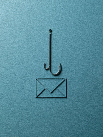 Fishing hook with an email icon, emphasizing the risks of phishing scams and fraudulent messages