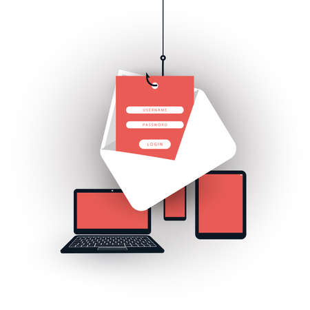 Internet phishing and hacking attack concept. Email spoofing and personal information security background. internet attack on credit card. vector illustration in flat design.