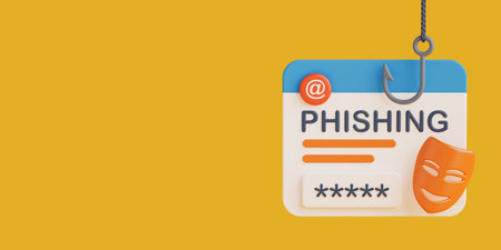 Cybersecurity Threat Awareness. Phishing Login Interface With Hook And Mask Symbolizing Data Theft on Yellow Background. 3d rendering