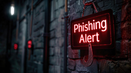 A Signs featuring a large hook piercing through, with the words Phishing Alert in red neon letters..