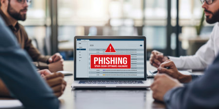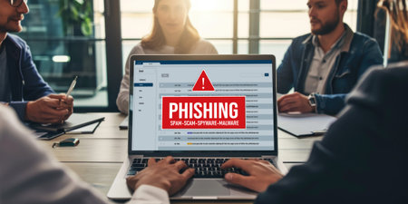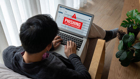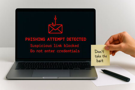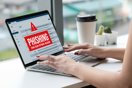 This close-up shot captures a critical moment of online security, featuring a laptop screen displaying a stark warning against a potential phishing attempt. The screen prominently shows a vivid red envelope icon from which a sharp fishing hook emerges, symbolizing the deceptive nature of phishing scams. Below this symbolic imagery, the text 'Potential Phishing Attempt' confirms the alert. In the top right corner, a red triangular warning sign further emphasizes the danger. The dimly lit scene highlights hands actively typing on the keyboard, underscoring the user's interaction and the immediate threat of cybercrime. This image effectively conveys the importance of vigilance against online fraud and highlights the visual alerts used to protect users from malicious attacks and data breaches.