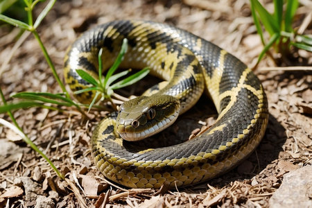 Close-up of a yellow-tailed ratsnake (Xenochrophis vittatus)