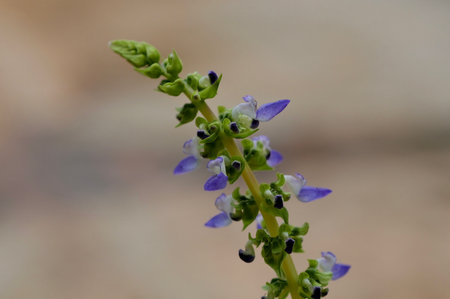 Justicia procumbens ( trailing water willow ) flowers. Acanthaceae annual plants. From August to October, reddish-purple flowers appear on spikes at the tips of stems.