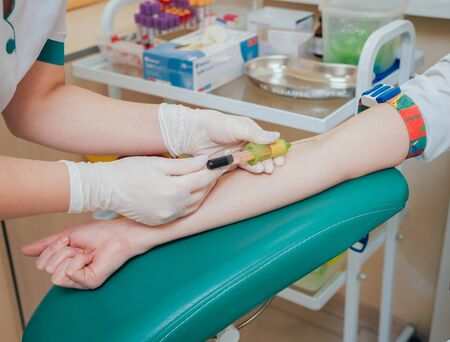 Laboratory nurse takes blood sample from arm on the analysis for dna